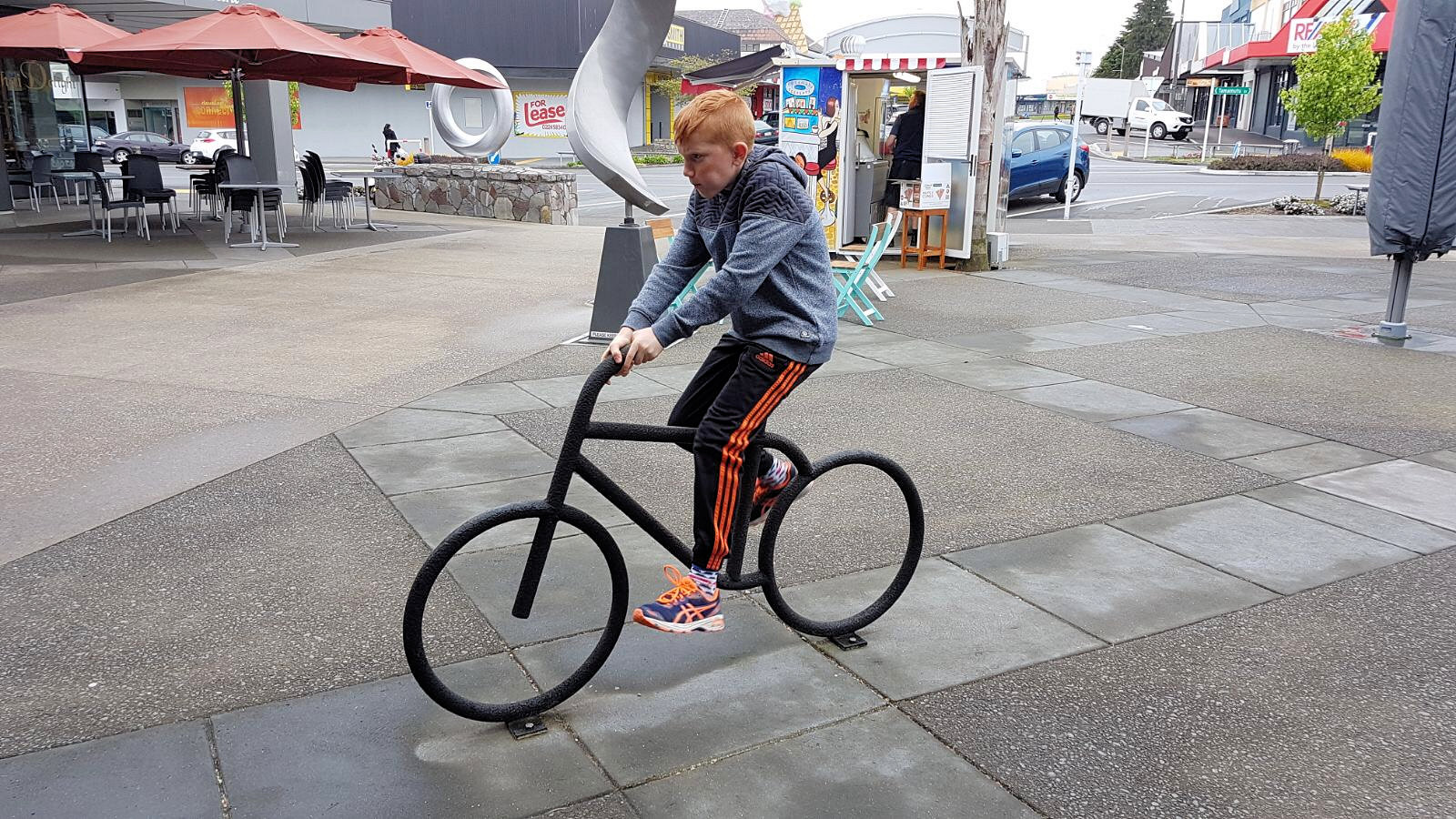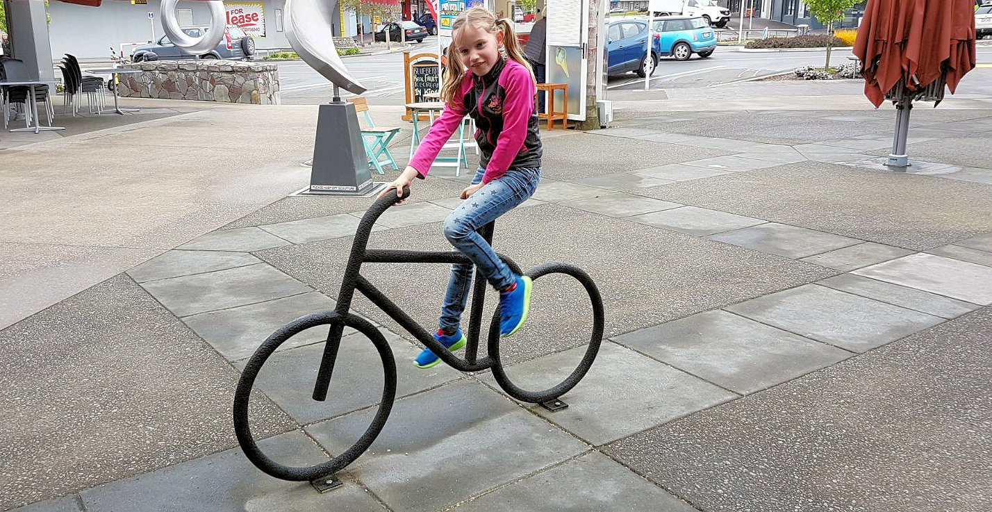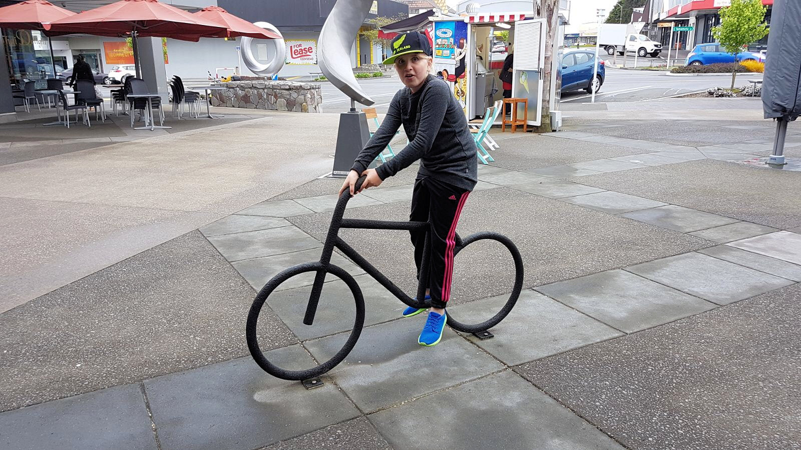 Zoe ook op de fiets. Huh, er zijn ook geen spaken trouwens.